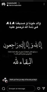 وبحسب المعلومات المتداولة، عاش والد A.L.A فترة صحية صعبة خلال الأسابيع الأخيرة، قبل أن يفارق الحياة اليوم، فيما لم تصدر إلى حدّ الآن أيّ تفاصيل رسمية من العائلة حول سبب الوفاة أو مراسم الجنازة.