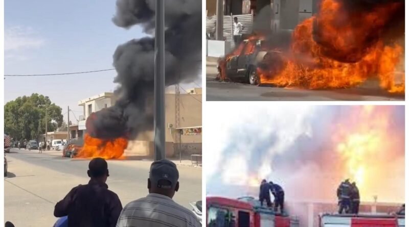 النيران تلتهم سيارة أمام مقهى شعبي ببنقردان